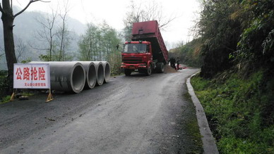 省道涵洞路基被冲毁 龙山公路局紧急抢修