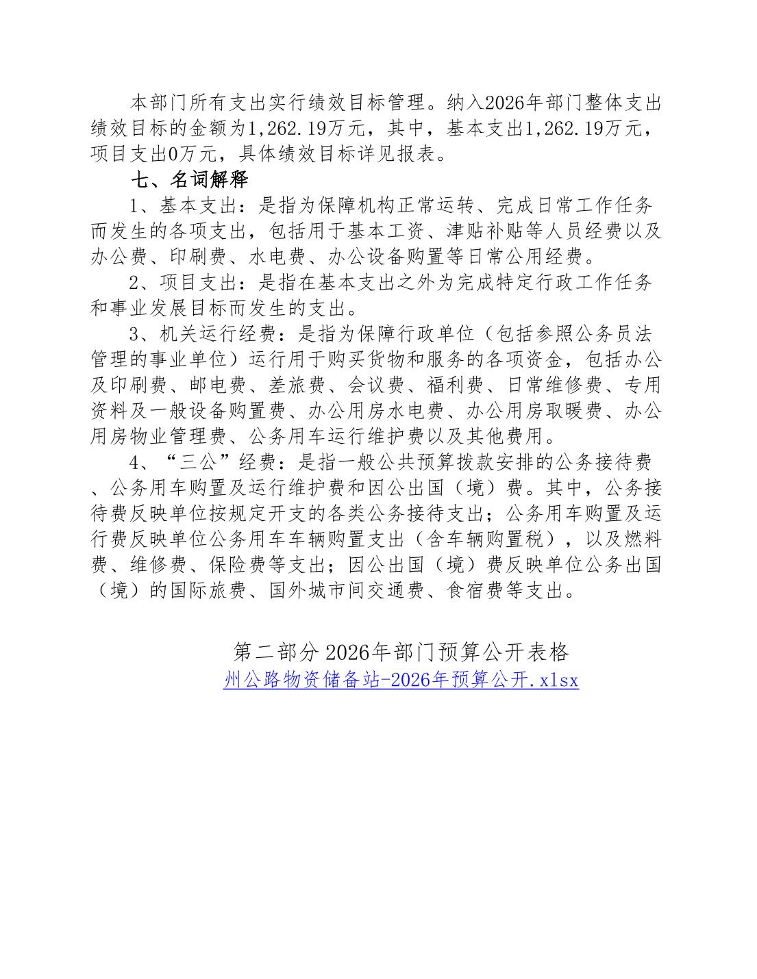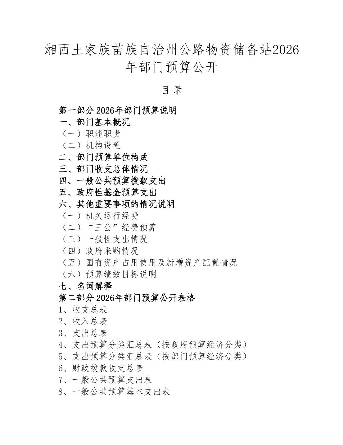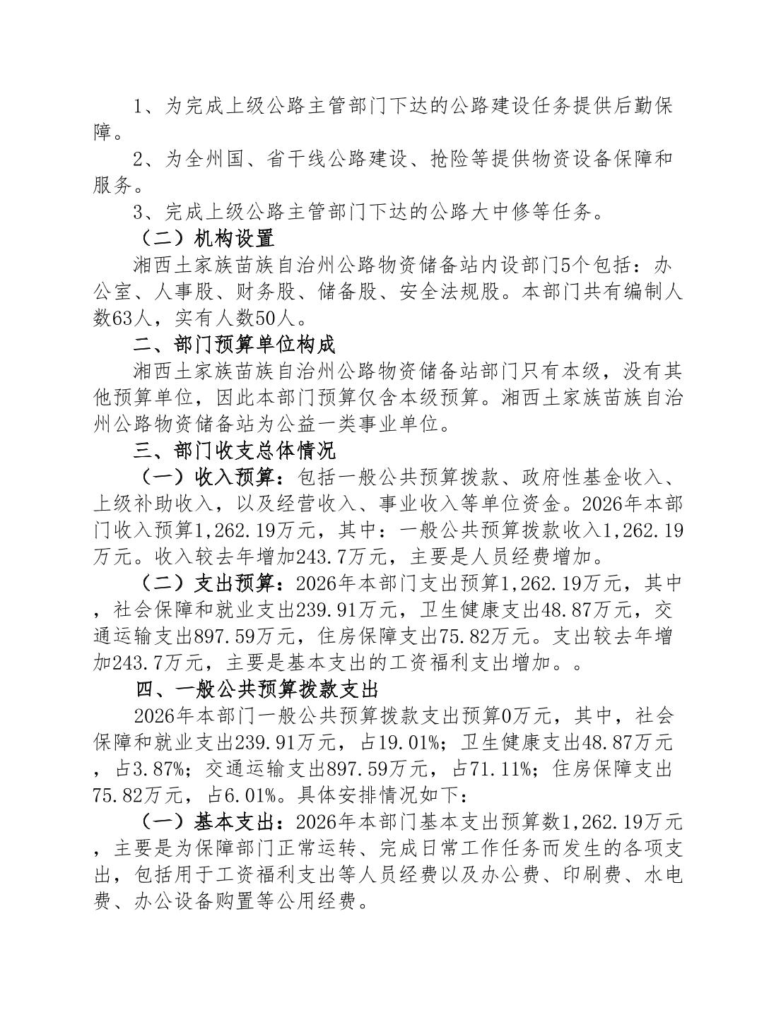 湘西自治州公路物资储备站2026年部门预算公开