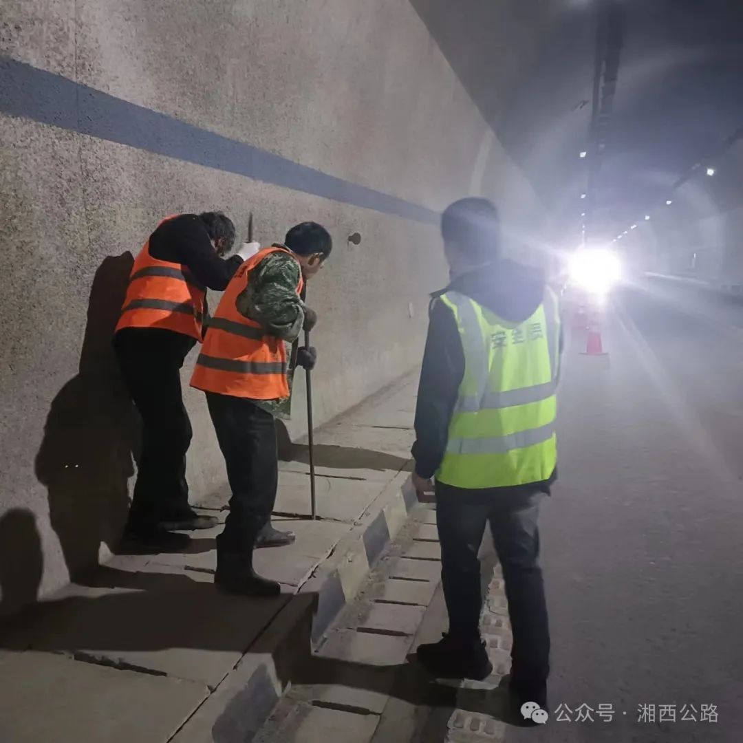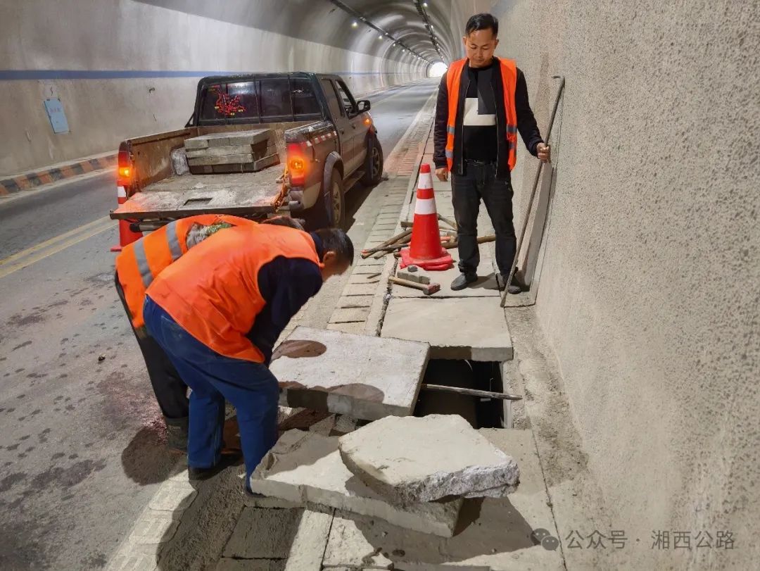 ▲5月4日,花垣县公路建设养护中心在“五一”假期开展公路巡查中发现,S256线角弄隧道内人行道盖板出现损坏和松动。