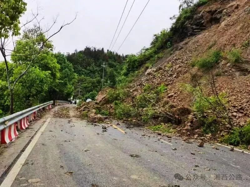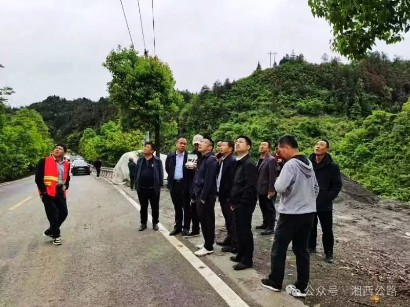▲5月4日,永顺S306线K180+350颗砂乡太坪村茶林坡处因水毁塌方,造成交通阻断。永顺县公路建设养护中心主要负责人带队赶赴现场查看险情。
