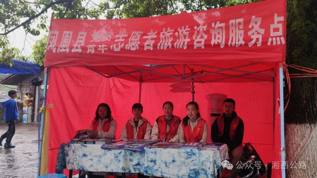 ▲“五一”小长假期间,各地游客接踵而至,为进一步保障良好旅游秩序,营造安全出行、文明有序的良好和谐氛围,5月3日,凤凰县公路建设养护中心积极响应县委县政府号召,派出新时代文明实践志愿服务队员走上街头,热情开展旅游志愿服务活动。凤凰公路人不光有在县域公路沿线巡查清理落石的橙色身影,还让古城内多了道红色靓丽风景线。