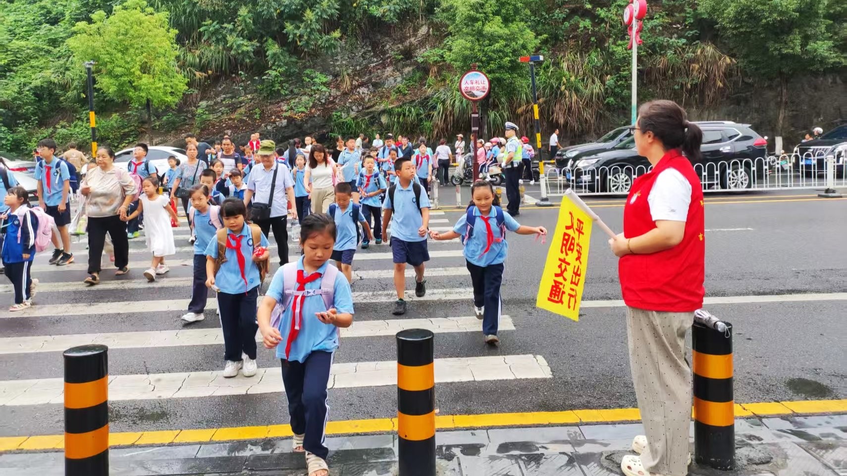 活动当天,党员志愿者们身着红马甲、佩戴党徽,早早抵达乾元小学门口及周边重点路口“上岗履职”。在现场,志愿者们分工明确、行动有序:一方面主动引导接送学生的车辆在指定区域有序停放,倡导“即停即走”模式,有效避免车辆扎堆造成交通拥堵;另一方面,针对过马路的学生群体,志愿者们耐心提醒孩子们遵守“一停二看三通过”的交通规则,时刻留意来往车辆,确保过马路时的人身安全。此外,志愿者还向部分接送学生的家长普及交通安全知识,呼吁家长以身作则,共同维护校园周边良好交通秩序。