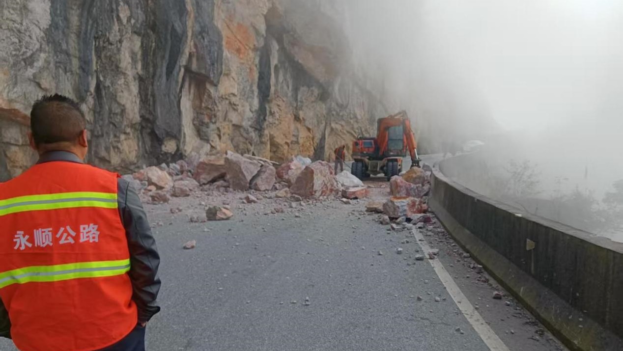 边坡落石阻断省道通行永顺公路部门紧急处置保畅通