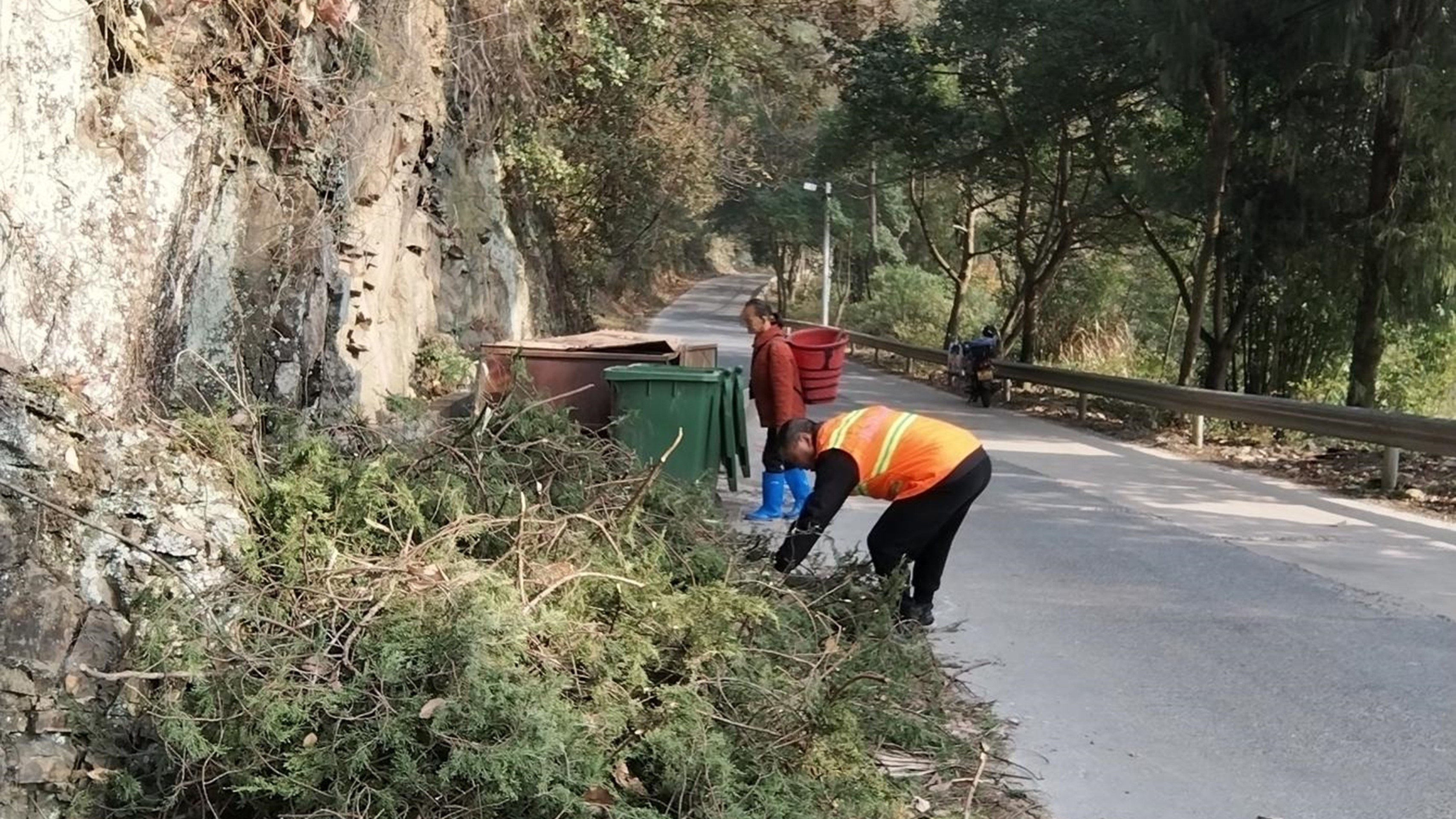 在养护作业现场,养护人员重点对辖区农村公路边沟、排水沟开展集中清淤,彻底清除淤泥、落叶、碎石等堵塞物,确保排水系统通畅,从源头防范雨雪天气积水结冰引发的通行风险;针对路面浮尘、杂物及散落砂石,及时进行清扫转运,尤其加密急弯陡坡等关键路段的保洁频次,持续改善路面通行条件。