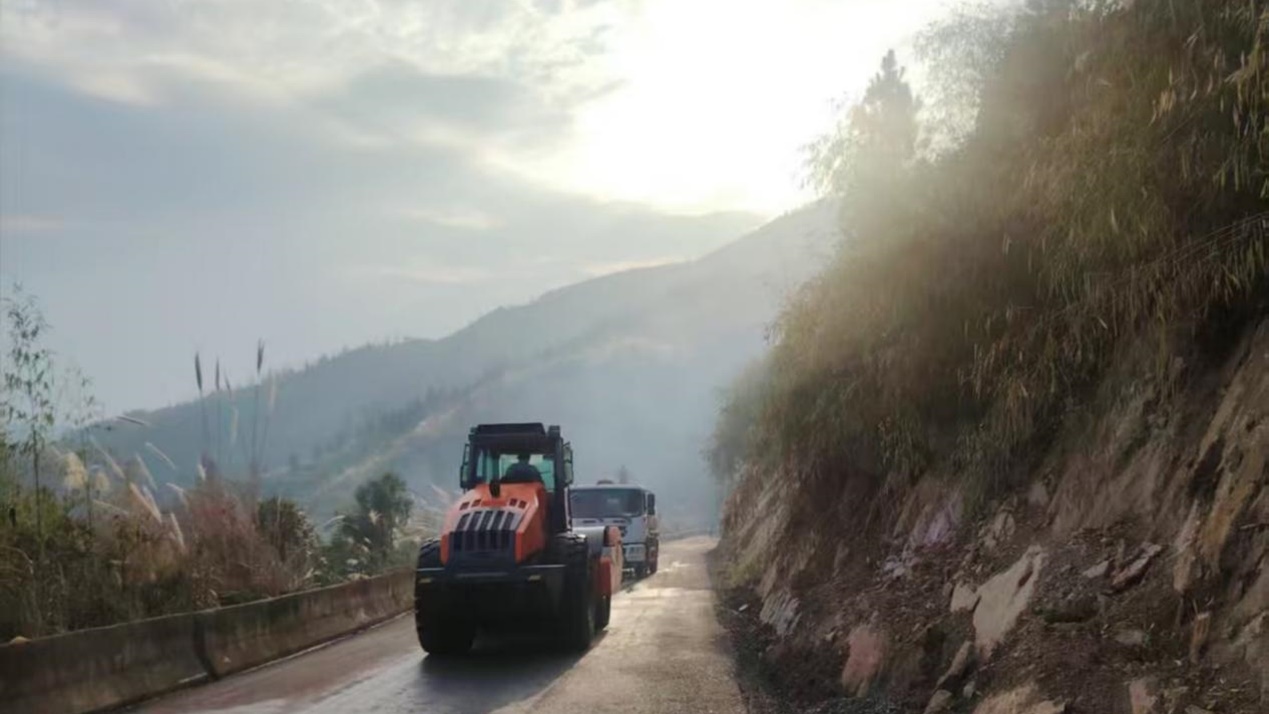 在施工现场,压路机、摊铺机等大型机械设备轰鸣作业,施工人员分工明确、协作紧密,严格遵循施工规范及技术标准,有序开展水稳层摊铺、碾压等核心工序。为确保工程质量,该中心专门抽调技术骨干全程驻场,对水稳层厚度、压实度等关键指标进行实时检测,全力保障工程质量达标。