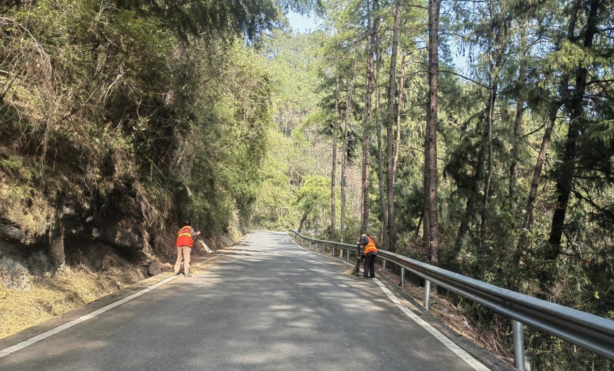 此次专项行动以防火隐患整治为核心,重点针对国家森林公园南华山国营林地、省自然保护区两头羊等关键区域的穿林公路展开作业。养护人员对公路路面、路肩及边沟内堆积的枯枝落叶、杂草等易燃物进行拉网式全面排查,实施集中清理与转运,从源头消除易燃物堆积引发的火灾风险,为林区生态安全筑牢第一道防线。