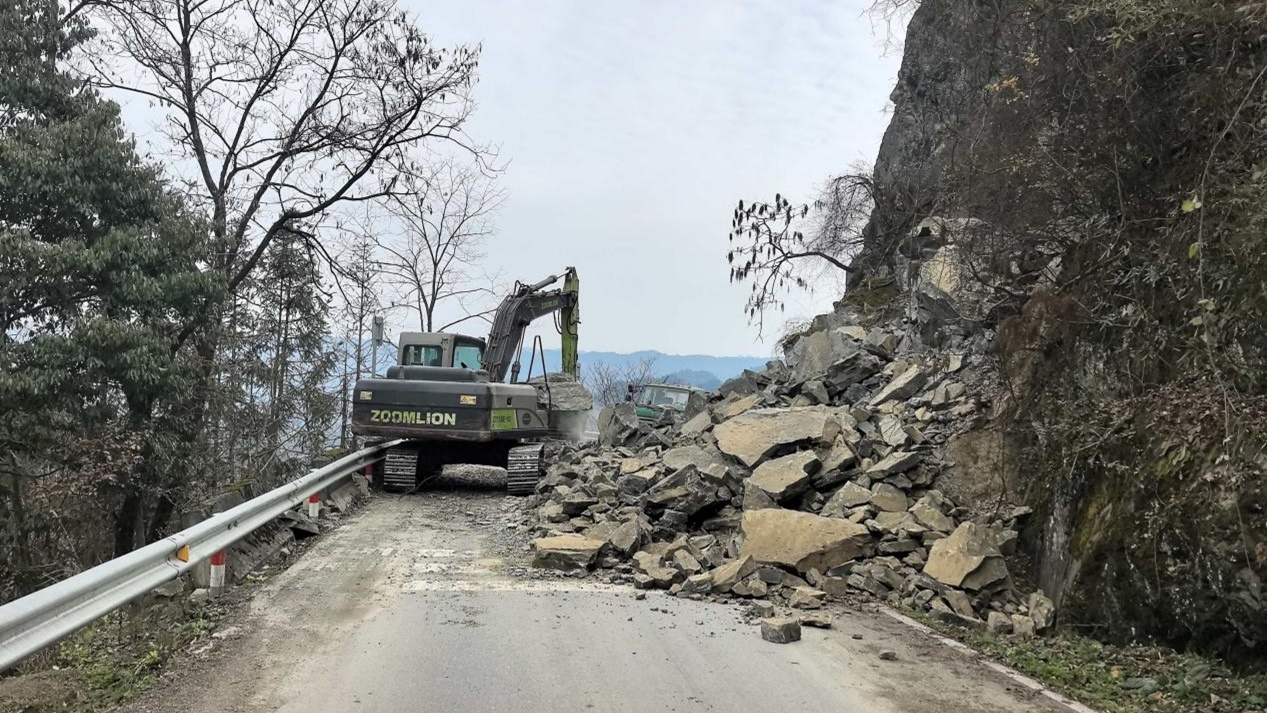 连续降雨致省道落石封路 龙山公路部门高效处置保畅通