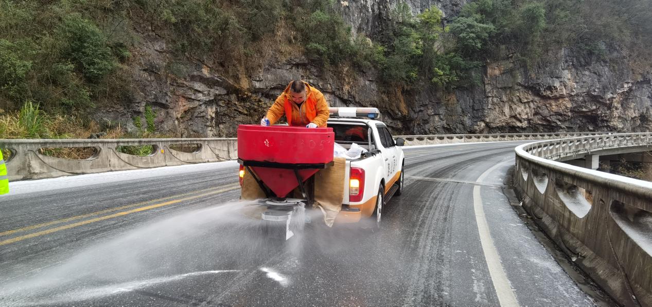 抢险过程中,中心班子成员身先士卒、率先垂范,带领各联系分队顶风冒雪奋战在除冰一线。抢险人员充分运用融雪撒布机、铁锹等工具,通过机械撒布融雪剂、人工铲除积冰等方式,逐路段清理冰雪隐患,全力消除路面冻滑风险,确保过往车辆安全通行。