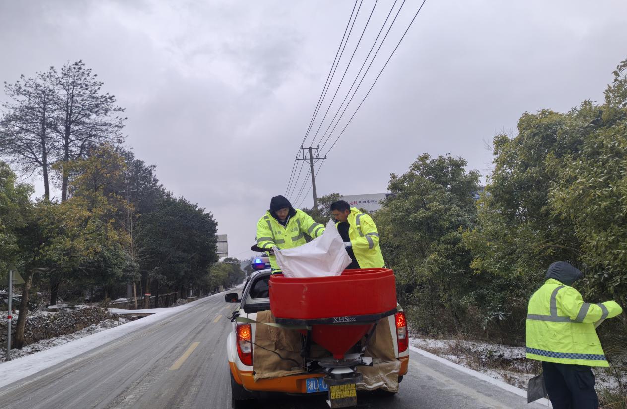 清晨7点,抢险力量全面铺开,各分队按照既定部署分赴责任区域:第三分队前往S247线永小路抚志路段实施撒盐除冰雪作业;第二分队、第五分队同步进驻S303线、G352线开展全域除冰行动;第一分队聚焦国道G209线开展巡查排查与抢险处置;第四分队深入S306线及县道X001马万线推进防冻防滑工作。