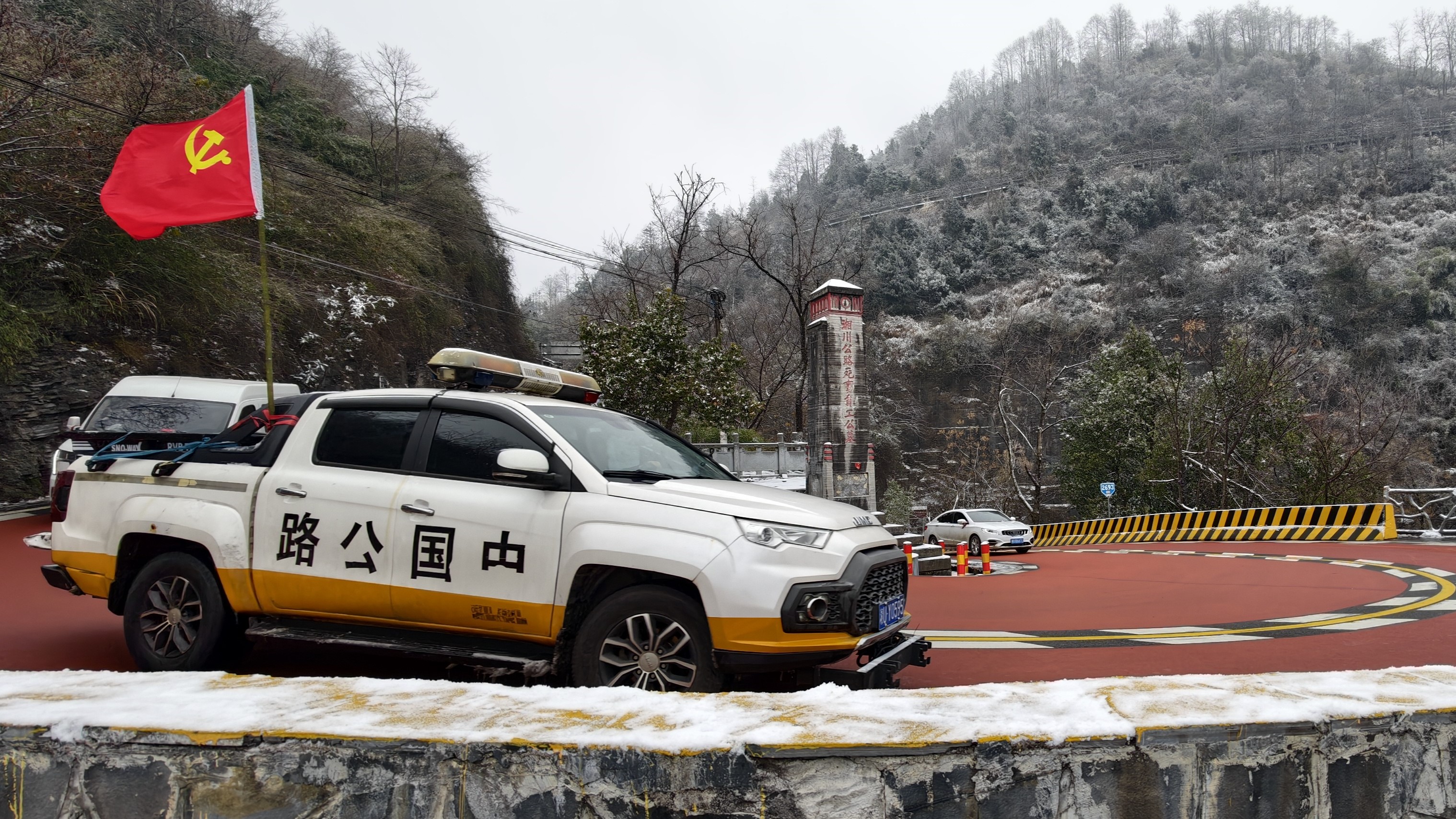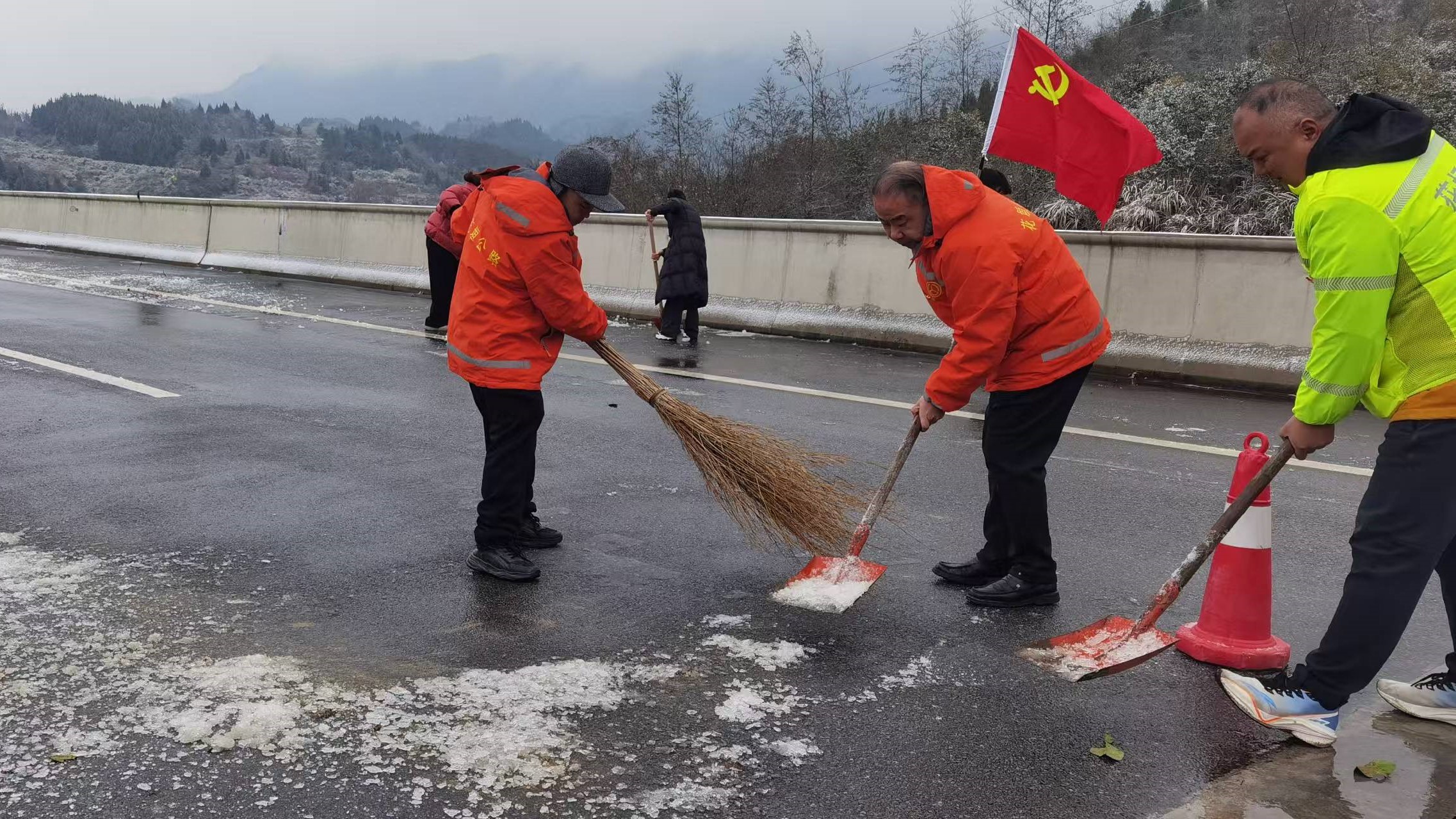党旗飘扬冰峰路湘西公路人鏖战风雪保畅通