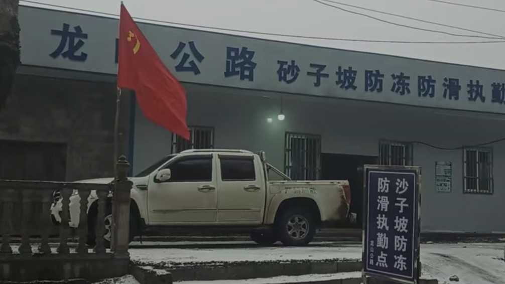▲龙山县公路建设养护中心党员突击队在防冻防滑执勤点驻守