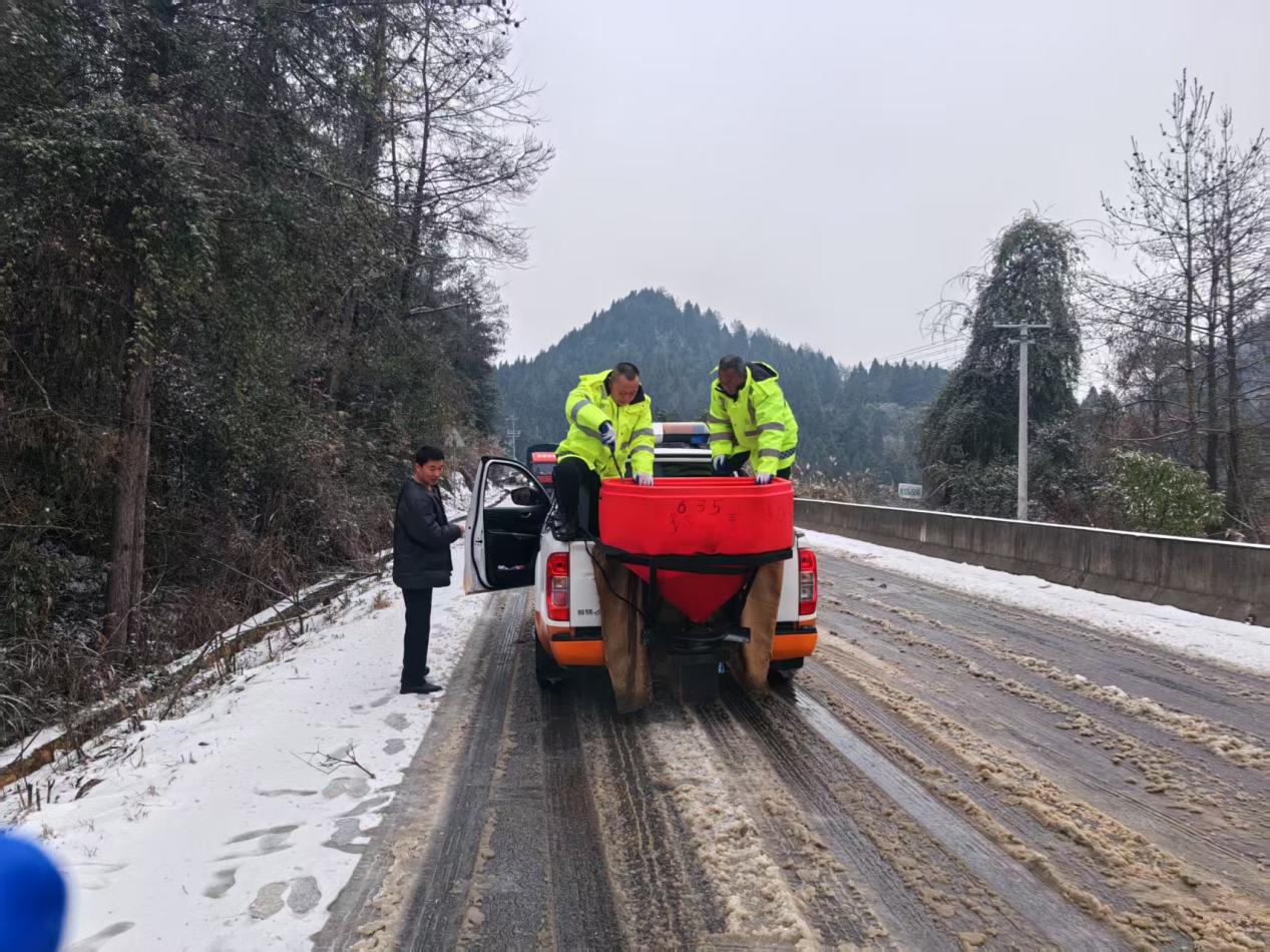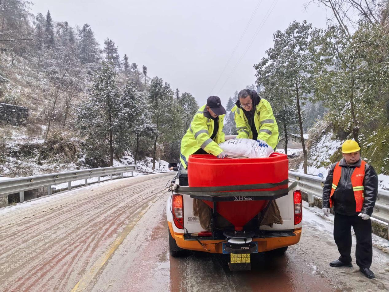 低温冰雪致道路结冰 永顺县公路建设养护中心紧急抢险保畅通