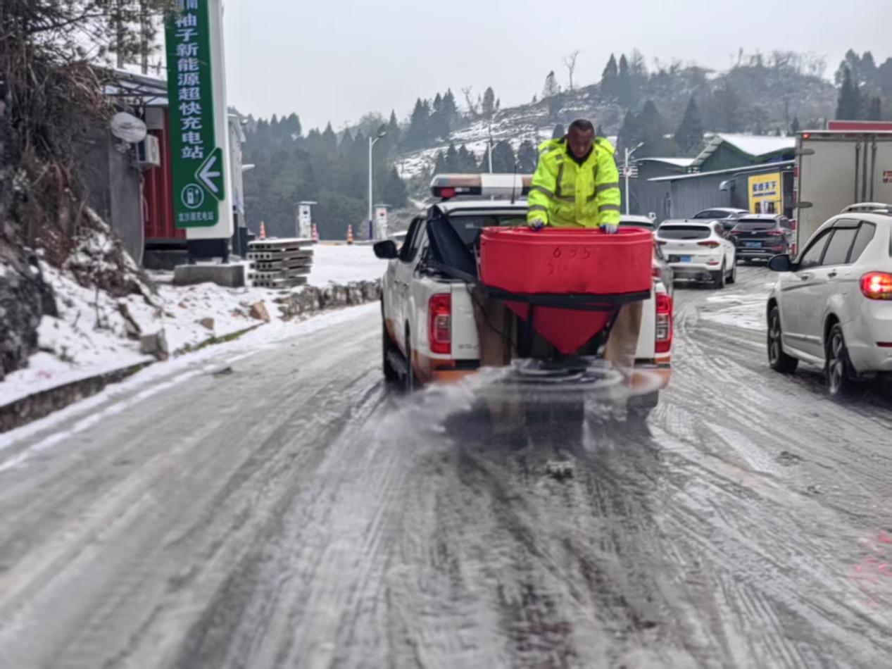 为高效推进除冰抢险工作,该中心科学调配力量,于当日早上8点精准部署作业分队:五分队奔赴国道G209线永顺登隆坡路段,一分队、三分队前往省道S247线永小路县城至抚志路段,同步开展融雪剂撒布作业。针对重点路段、冰雪积厚的风险路段,抢险队员操作融雪撒布机来回反复撒布融雪剂,加速融雪除冰。风雪中,抢险人员不畏严寒、坚守一线,以实际行动筑牢道路交通安全防线。