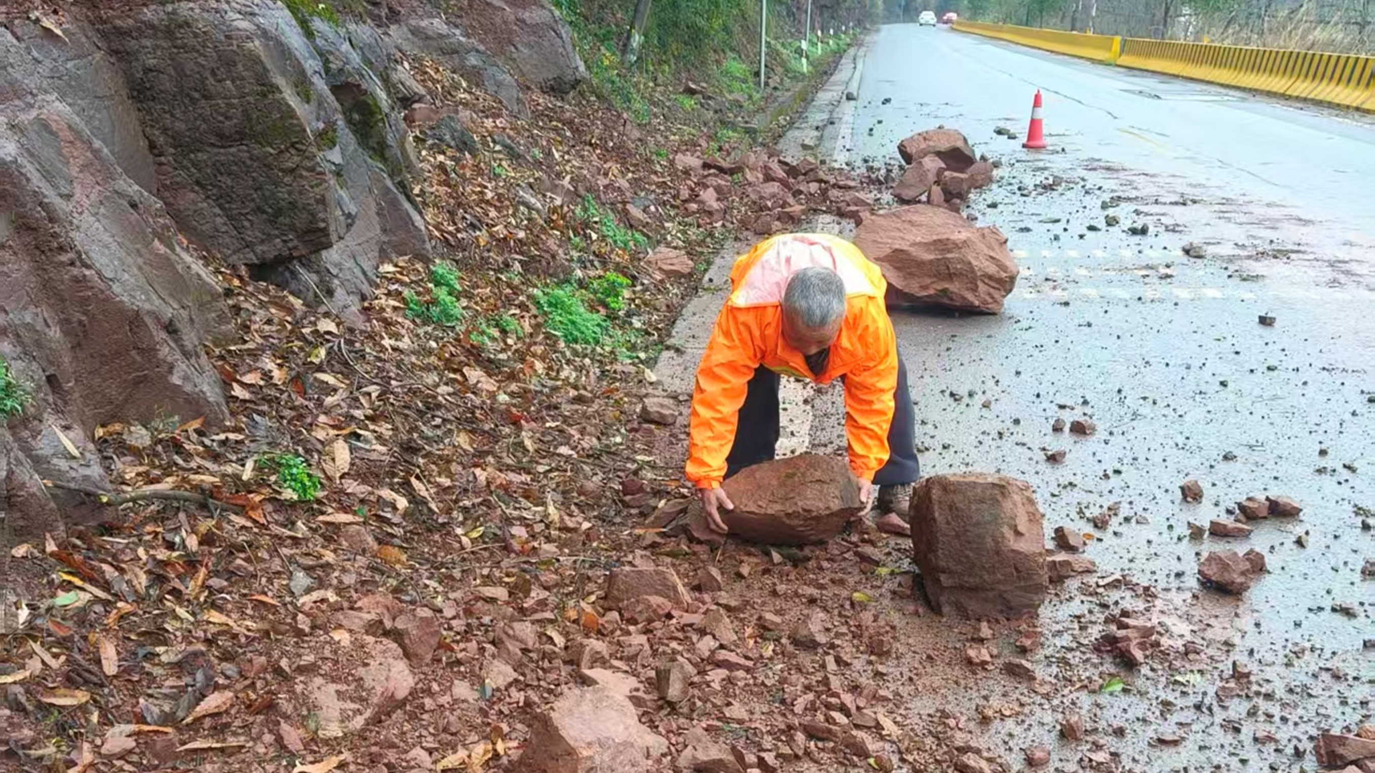 养护人员抵达现场后,在做好安全防护、划定作业区域的前提下,采用人工清理、分段清运的方式,对散落的土石进行快速清理。经过紧张有序的作业,该路段的落石和松动土石被彻底清除,道路迅速恢复安全通行条件。