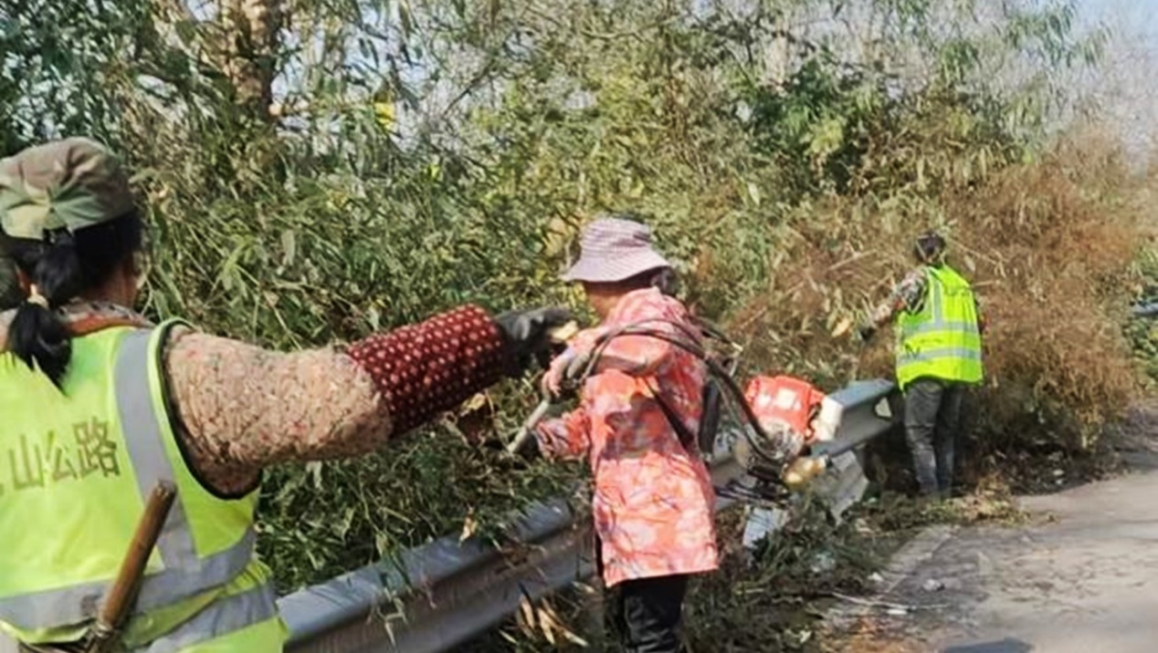 ▲S255线洛塔至洗车路段清理路肩杂草