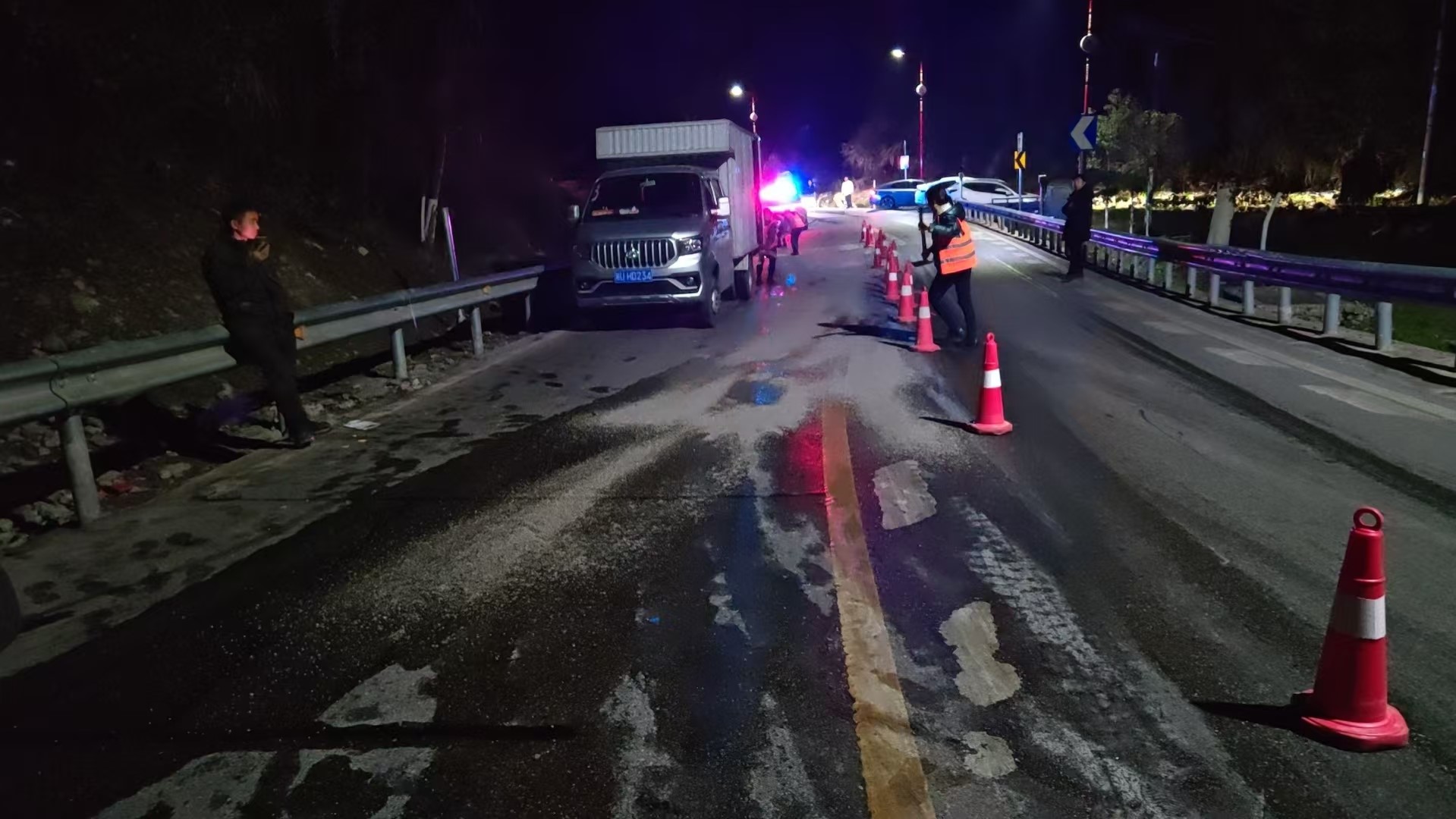 花垣公路部门2小时快速处置油污路面筑牢夜间国道安全防线