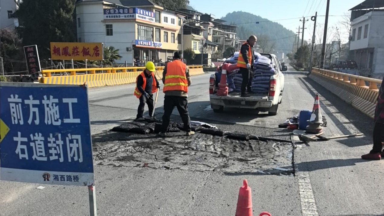 凤凰县公路建设养护中心集中修补路面病害抓实春季养护