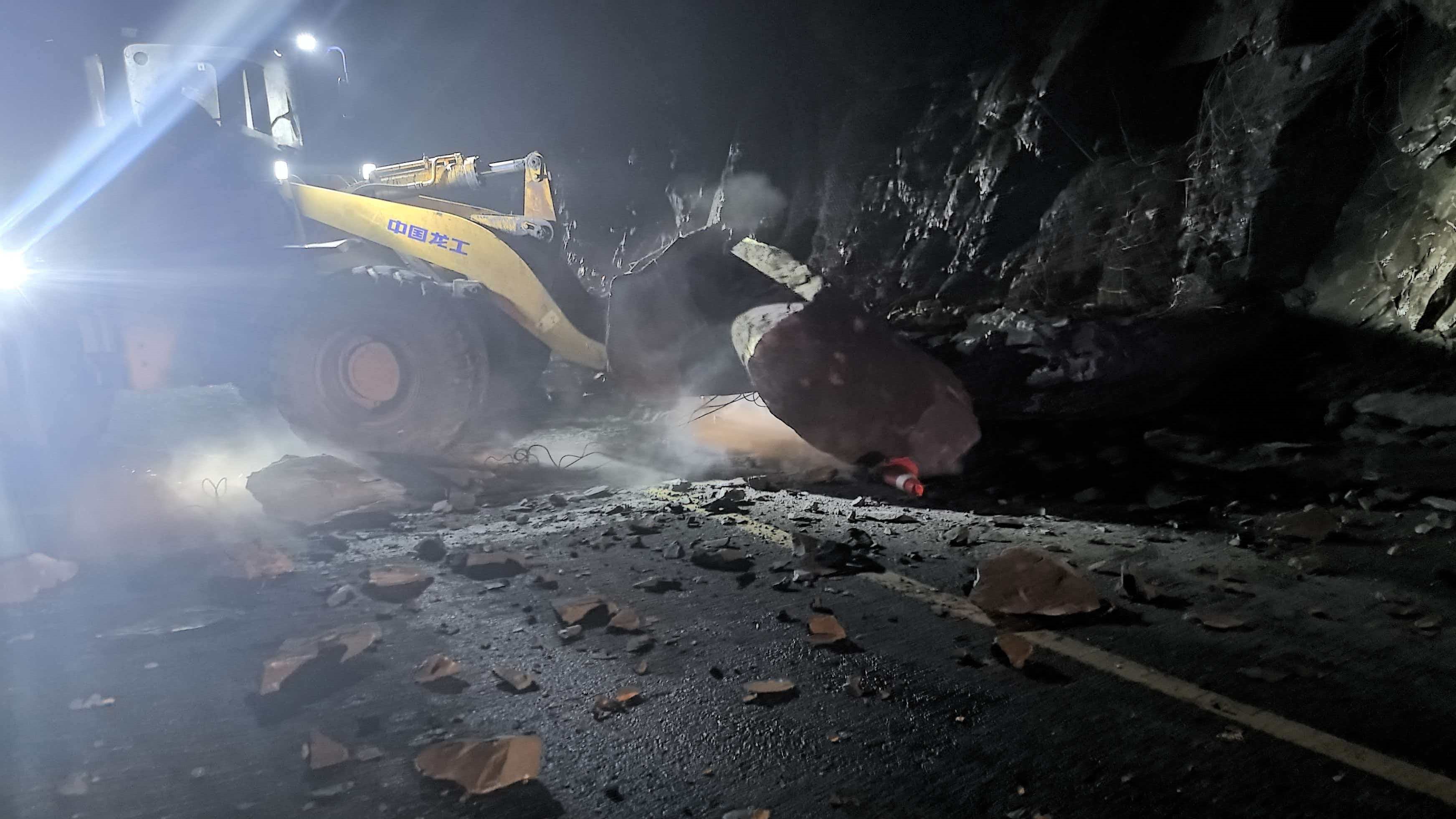 凌晨1时许,接到险情报告后,该中心立即启动应急抢险预案,第一时间组织养护作业人员,调配铲车等应急抢险设备赶赴塌方现场。到达现场后,抢险人员率先做好安全防护工作,在路段两端设置警示标识,划定警戒区域,从源头防范次生事故发生。在做好安全保障的基础上,抢险作业全面展开。面对路面散落的大小落石,铲车加紧清理路障,养护人员协同配合。