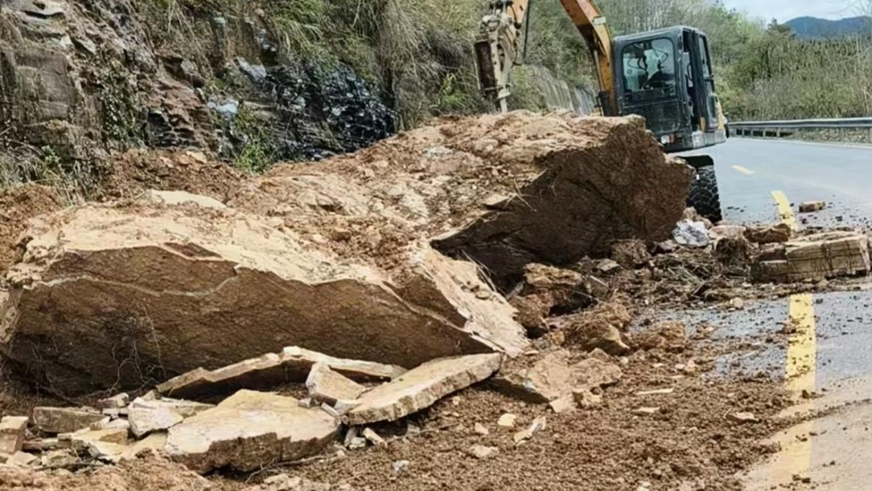受持续降雨影响,3月25日20时许,凤凰县S256线八仙过海路段突发边坡塌方,大量土石滑落占据大半幅路面,严重威胁过往车辆和行人安全。险情发生后,凤凰县公路建设养护中心立即启动应急抢险预案,全力开展道路抢通工作。从紧急布设警戒、临时半幅通行,到彻夜破碎巨石、全面抢通道路,以快速响应、高效处置,彰显了守护公路安全畅通的责任与担当。