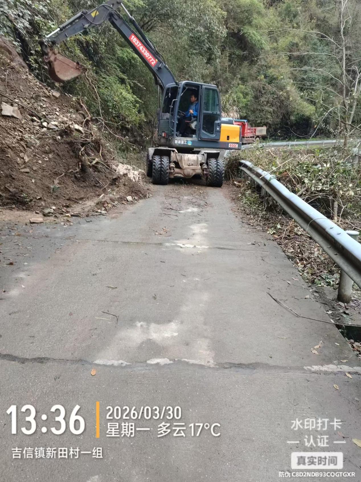为快速打通受阻路段,抢险队伍在现场科学制定处置方案,分工协作推进抢险作业。一是安排专业人员操作机械设备,对4处塌方点位的泥土、石块进行逐一清理;二是安排专人全程监测周边边坡动态,实时排查安全隐患,为抢险作业筑牢安全防线,确保清障工作安全、有序、高效推进。