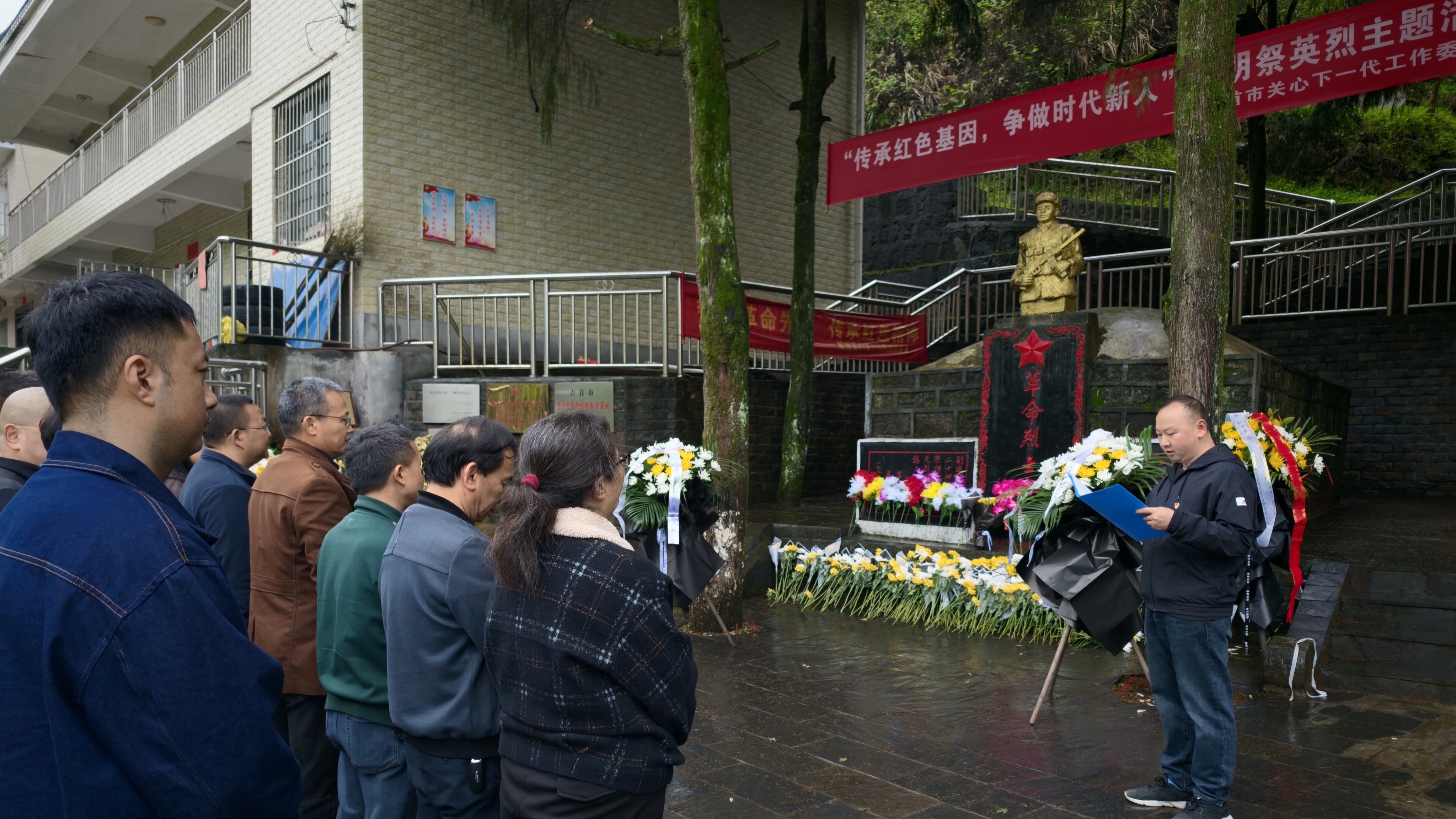 活动当天细雨绵绵,革命烈士公墓内松柏苍翠、庄严肃穆。全体党员干部佩戴党徽,整齐列队、神情肃穆,敬献花篮,鞠躬致敬,深切缅怀24名在剿匪战斗中,为保护群众生活物资、掩护群众安全转移而英勇牺牲的先烈,追思他们不怕牺牲、无私奉献、忠诚为民的崇高精神。