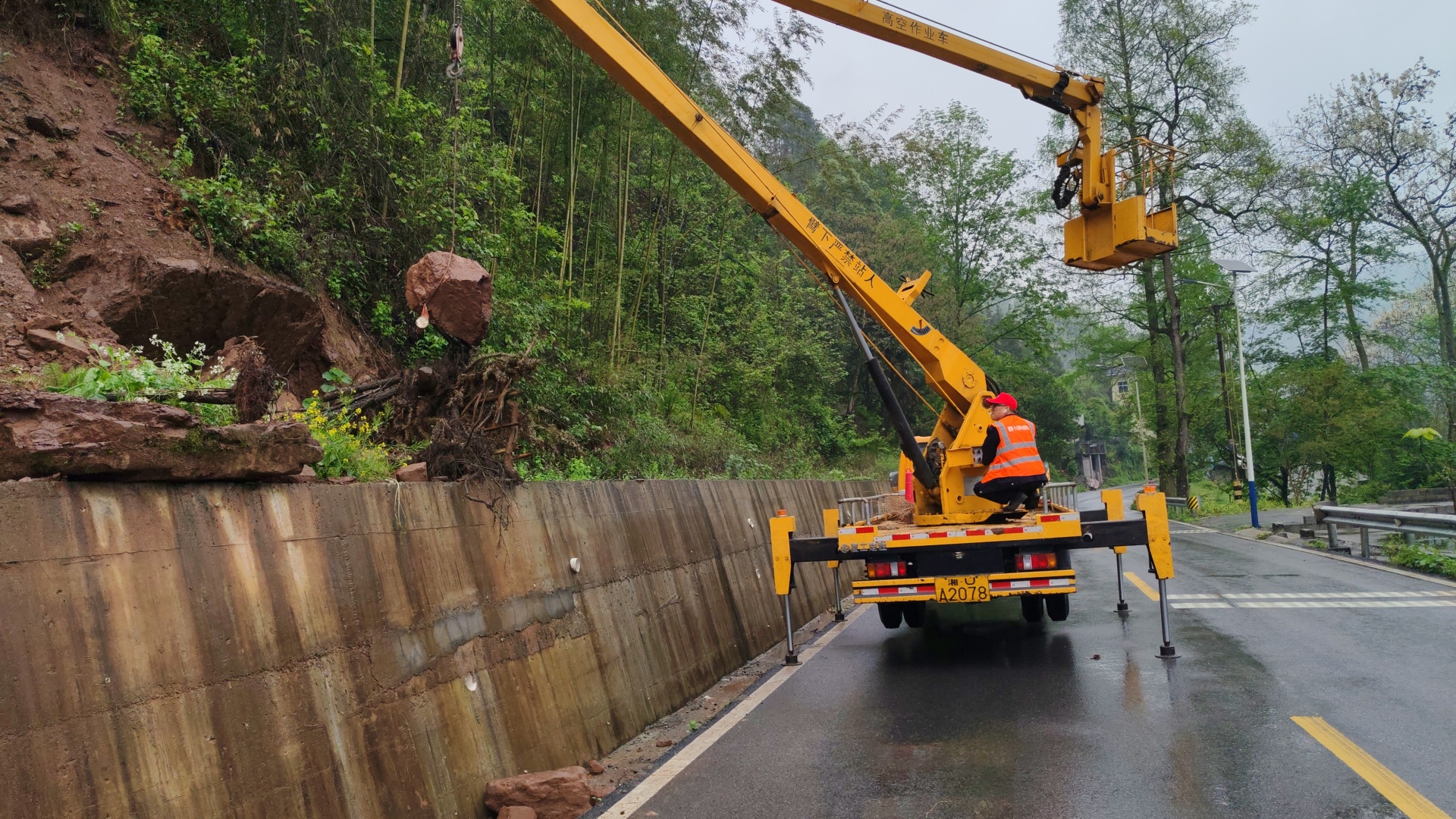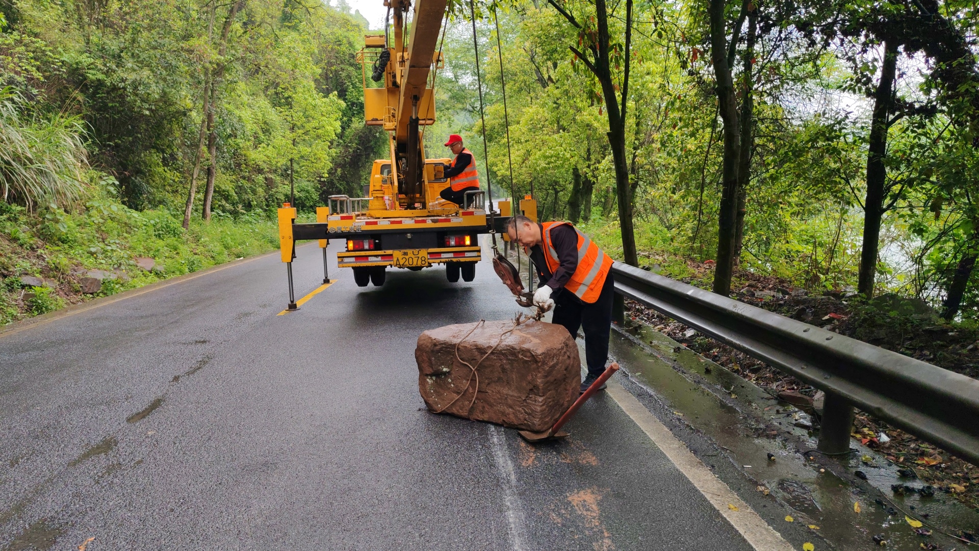4月13日,辖区降雨持续,G319线新建村、持久村路段相继发生落石险情。该中心抢险队伍快速响应,分别派出5名抢险人员、1台机械车辆赶赴现场,高效完成落石清理与隐患排查,两处险情均在30分钟内处置完毕,最大限度减少对交通通行的影响。