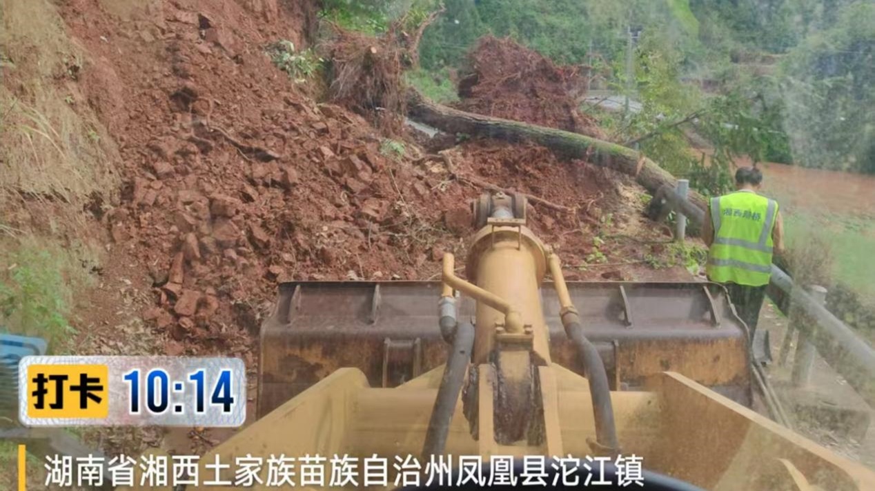 受4月15日晚持续强降雨影响,凤凰县境内国省干线及多条农村公路出现边坡塌方、落石、滑坡险情,其中水打田乡C118线、沱江镇Y018线两条乡道中断交通,G209绕城线、S320线凤木公路等通行受阻。凤凰县公路建设养护中心第一时间启动防汛抢险应急预案,迅速排查灾情,制定抢通方案,紧急调配设备、人员奔赴各受灾路段,全力开展道路清障保通作业。