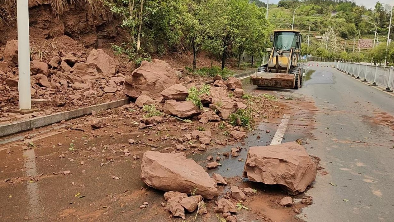4月16日清晨,抢险工作全面展开。抢险队伍严格遵循“安全优先、先通后畅、分段作业”原则,2台安全巡查车、6名巡查人员、3台铲车、1台轮式挖机、1台装卸机及15名抢险人员兵分多路,分点同步推进应急处置。对完全阻断的C118线树坳上-桐粑山段、Y018线万召村段,集中机械与人力攻坚清理塌方土石;对G209绕城线、S320线凤木公路等路段,采取“人工清小石+机械除大石”的方式,快速清除边坡落石与泥石堆积物,及时消除安全隐患。